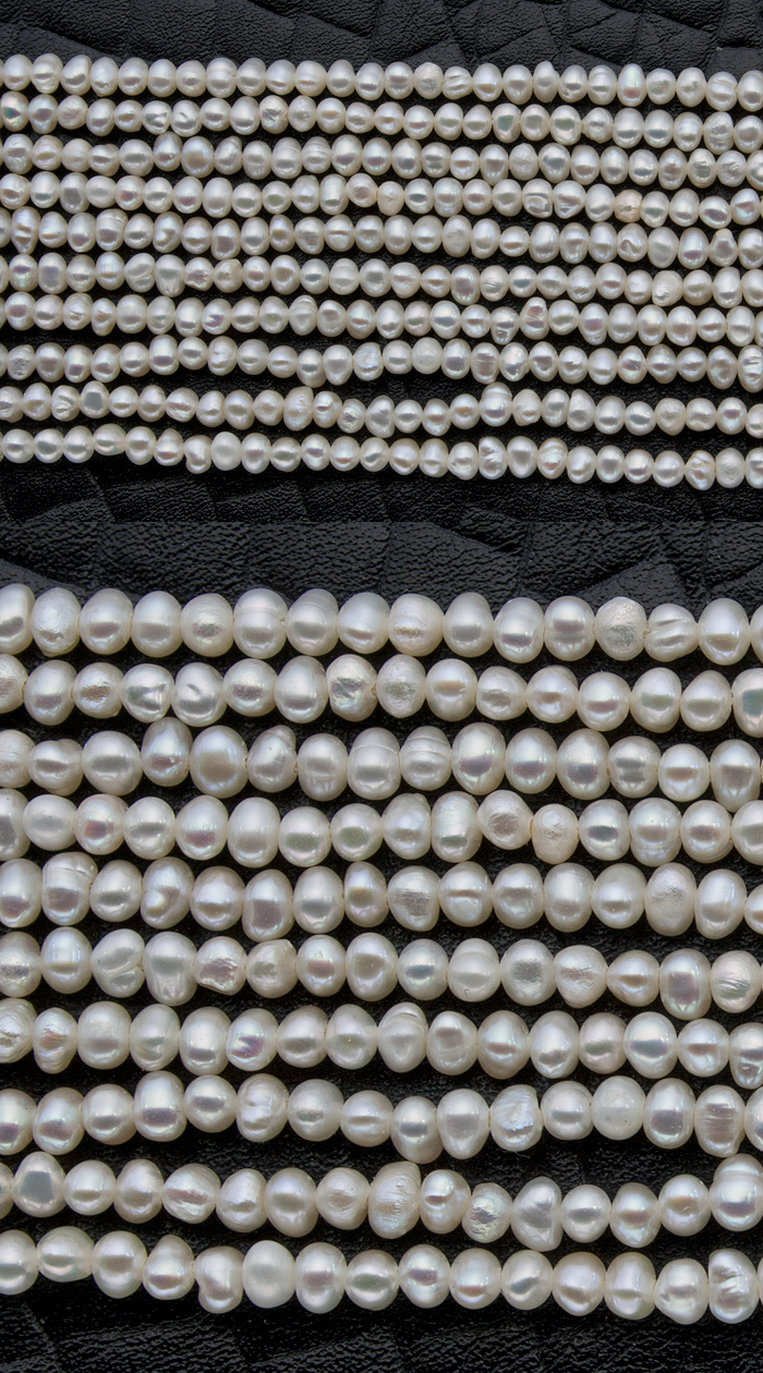 - 판매단위 : 1줄 ( 약 39 cm )- 사이즈 : 약 지름 3.2 mm ~ 3.5 mm - 원산지 : 중국- 사진상보다 특유의 펄색상이 아름다운 무착색 화이트크림색상의 담수진주입니다.- 양식 담수진주(양식)로 진주에 흡집이 포합되어있습니다.- 양식 담수진주의 품질(로스분)을 감안하여 가격측정하였습니다.- 양식 담수진주의 모양과 사이즈가 일정하지 않습니다.- 담수진주는 구멍이 좁습니다.- 직구멍입니다.
