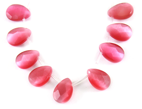 [Synthetic Cat's Eye stone] 캣츠아이 Flat Tear Drop Cut 약 9 mm x 14 mm - 딥 핑크