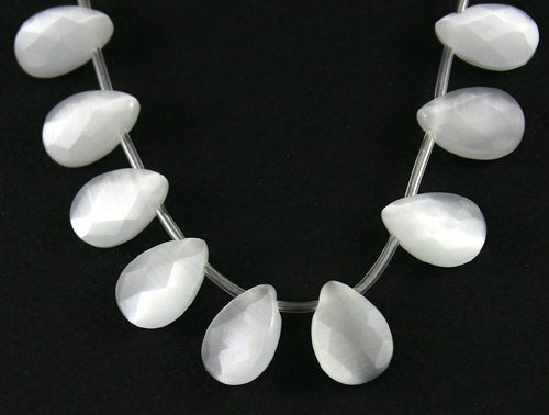 [Synthetic Cat's Eye stone] 캣츠아이 Flat Tear Drop Cut 약 9 mm x 14 mm - 화이트