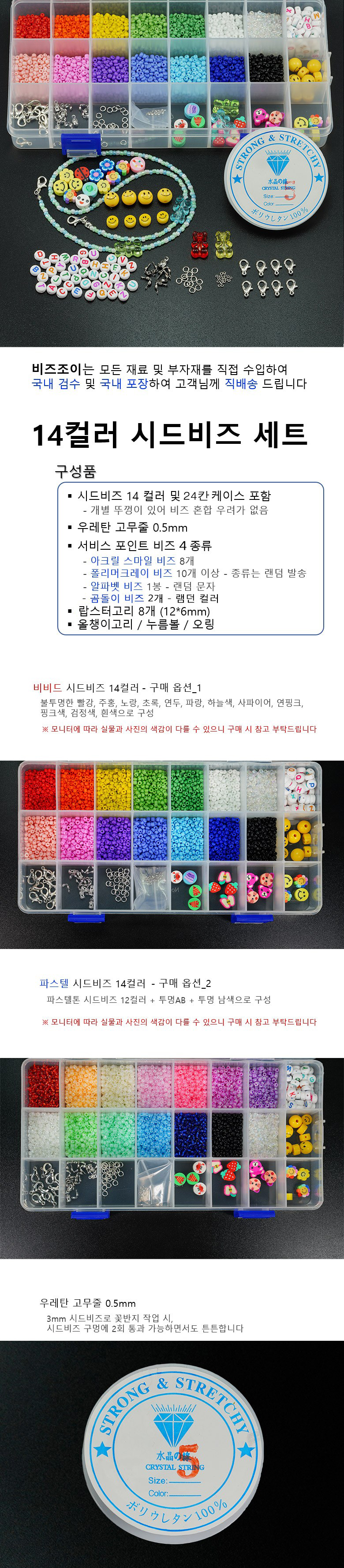 [Seeds Beads] 씨드비즈 14컬러 비비드컬러 세트 + 우레탄0.5 + 마스크고리 + 투명케이스 + 서비스비즈 (할인판매)