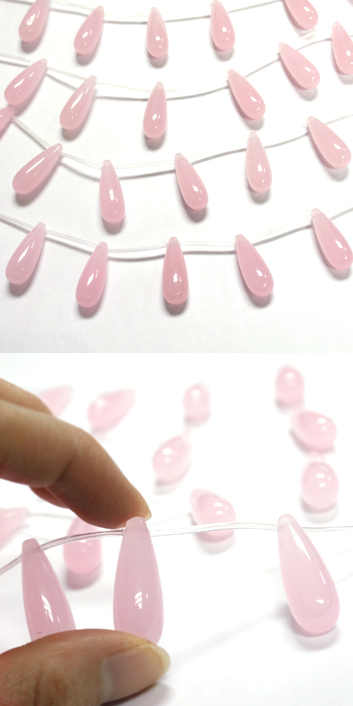 [whtie Jade] 백옥 Puff Long Tear Drop 약 10 mm x 28 mm - 로즈 핑크