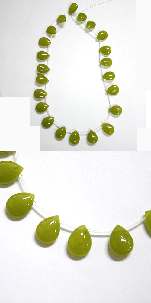 [whtie Jade] 신백옥 Flat Tear Drop - 올리브그린