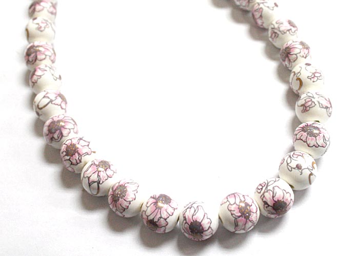 [Ceramics beads] 도자기 Round - 연분홍 꽃(은분)