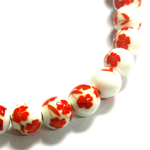 [Ceramics beads] 도자기 Round - 레드 꽃