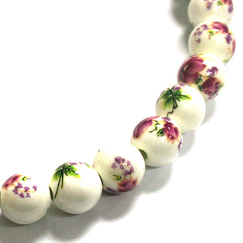[Ceramics beads] 도자기 Round - 자색 꽃