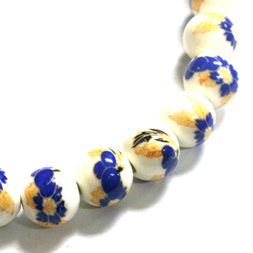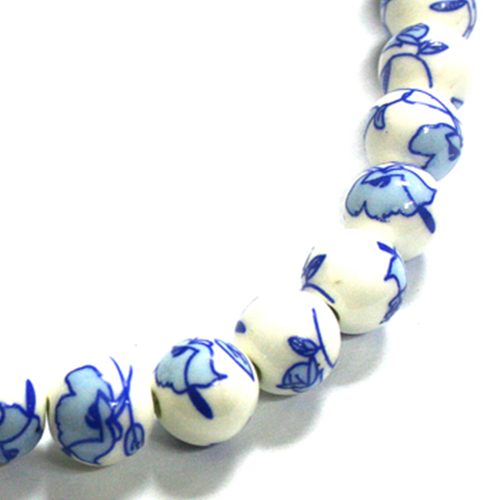[Ceramics beads] 도자기 Round - 파란 꽃