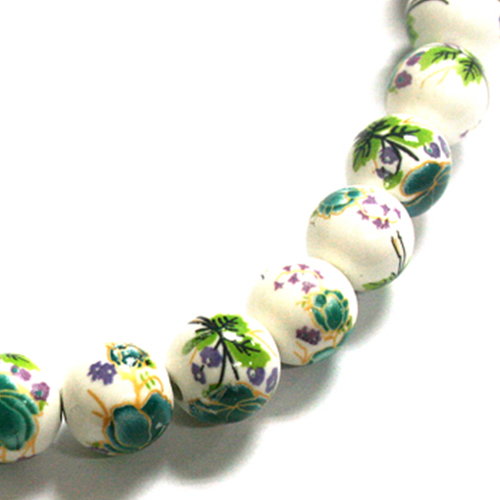 [Ceramics beads] 도자기 Round - 초록 꽃