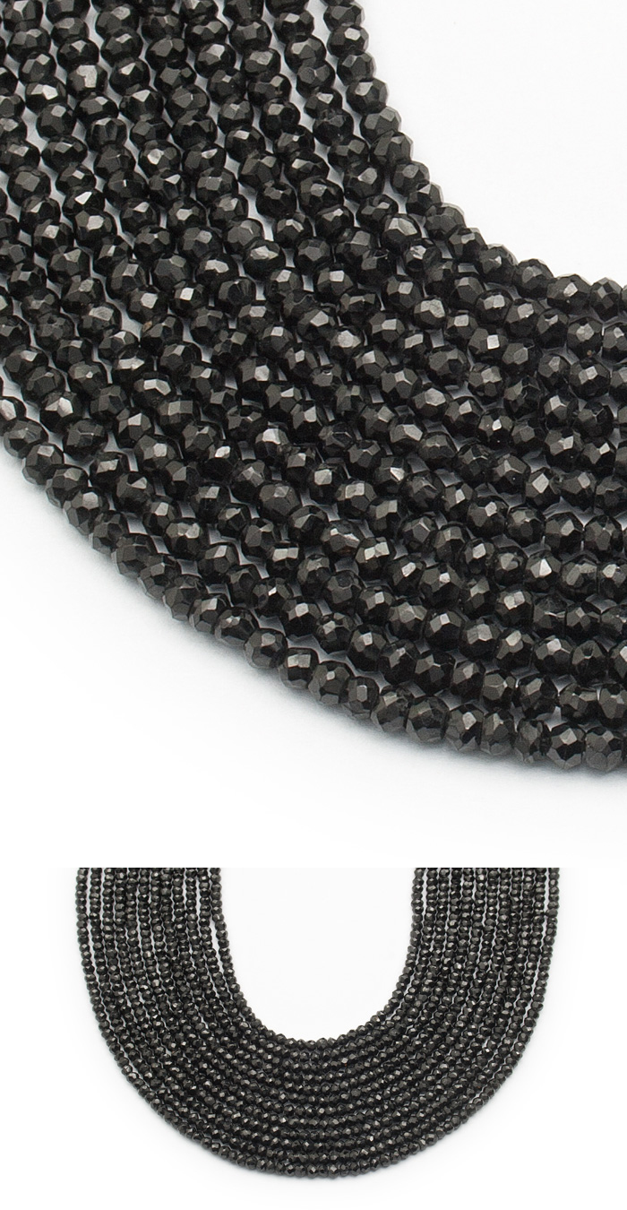[Black Spinel] 천연 블랙 스피넬 Faceted Rondelle 약 2 mm