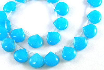 [whtie Jade] 신백옥 Flat Pear Drop 약 14 mm x 14 mm - 아쿠아 블루