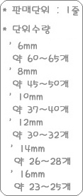 - 사이즈 : 약 지름 6mm, 8mm, 10mm, 12mm, 14mm, 16mm 중선택