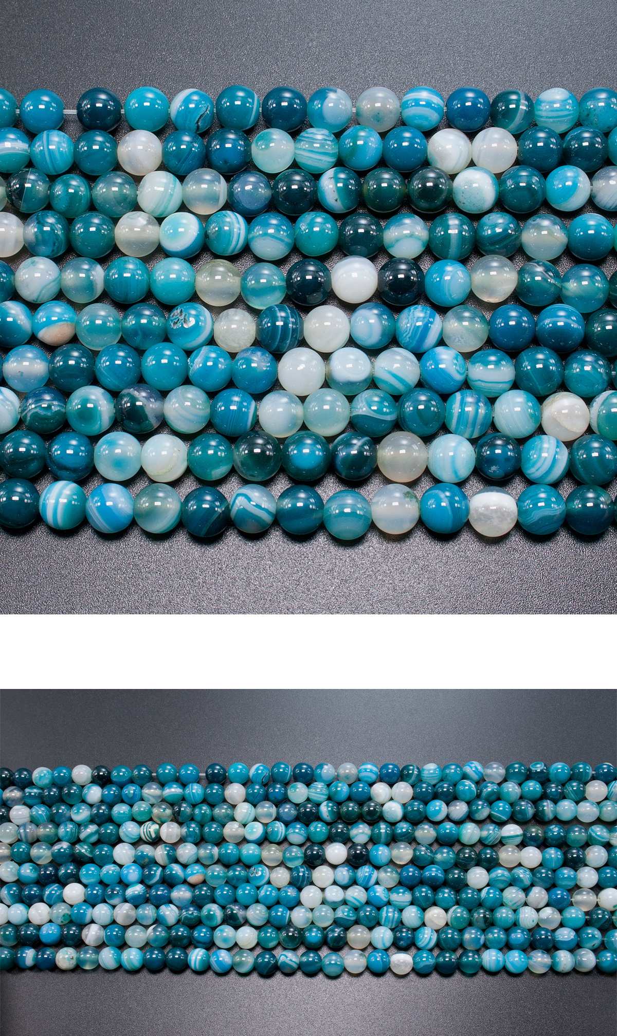 [Banded Agate] 천연 밴디드 아게이트 Round 약 6 mm ~ 6.5 mm - 블루 착색 (1)