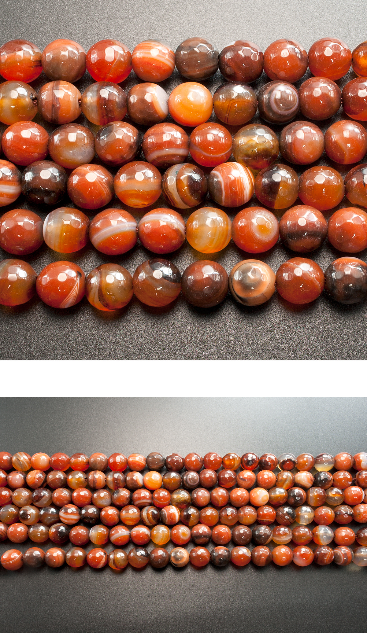 [Banded Agate] 천연 밴디드 아게이트 Round Cut 약 10 mm ~ 10.5 mm - 레드 브라운