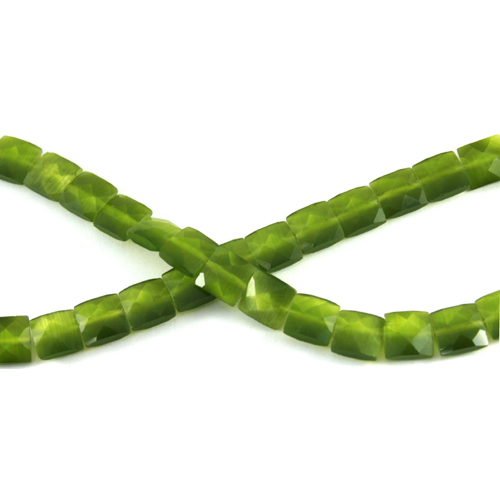 [Synthetic Cat's Eye stone] 캣츠아이 Flat Square Cut 약 10 mm x 10 mm - 올리브 그린