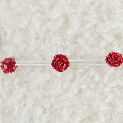 [Synthetic Coral rose] 합성 산호 핀 장미꽃 약 8.5 mm ~ 9 mm x 5 mm ~ 5.5 mm (레드컬러)