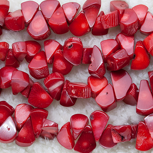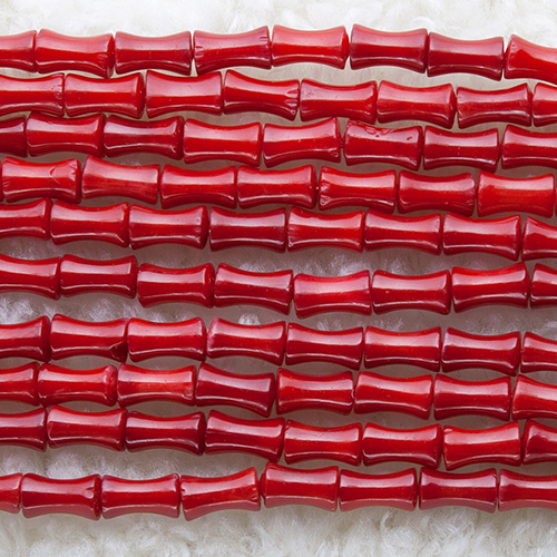 [Coral] 천연 산호 Bamboo 약 4 mm x 7 mm (레드_착색)