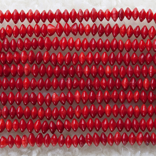[Coral] 천연 산호 Abacus 약 4.2 mm ~4.8 x 2.5 mm ~ 2.8 mm (레드_착색)