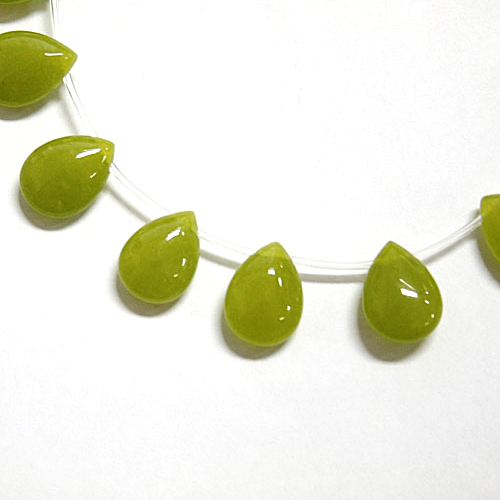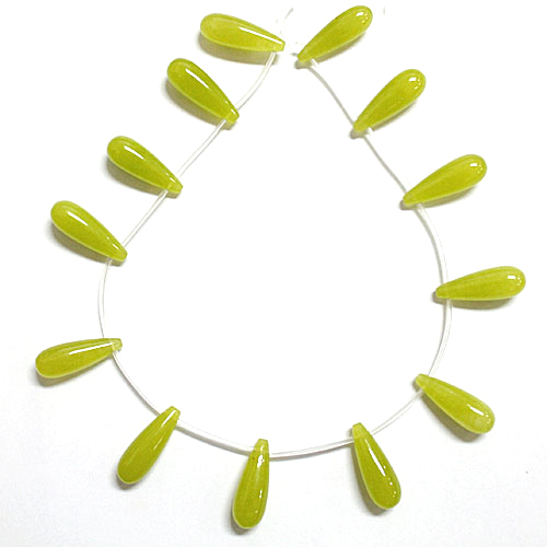 [whtie Jade] 신백옥 Puff Long Tear Drop 약 10 mm x 28 mm - 올리브 그린