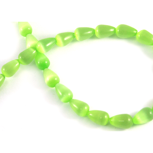 [Synthetic Cat's Eye stone] 캣츠아이 Puff Tear Drop 약 8 mm x 12 mm - 라이트 그린