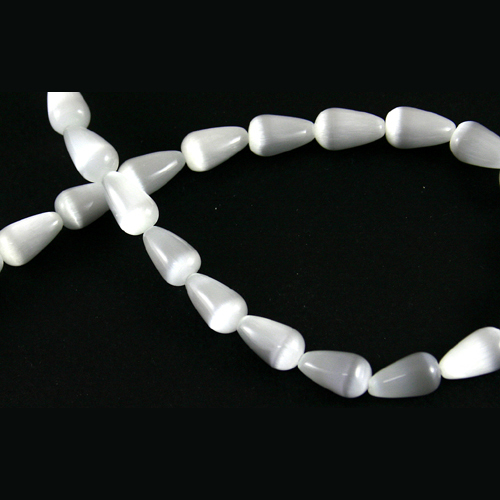 [Synthetic Cat's Eye stone] 캣츠아이 Puff Tear Drop 약 8 mm x 12 mm - 화이트