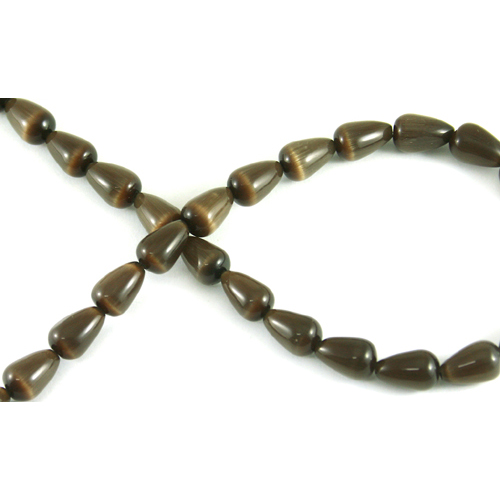 [Synthetic Cat's Eye stone] 캣츠아이 Puff Tear Drop 약 8 mm x 12 mm - 새들 브라운