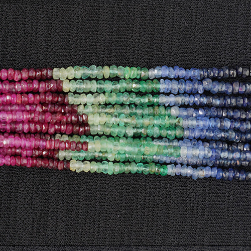 [Multi] 무착색 천연 루비&사파이어&에메랄드 Faceted Rondelle AAA 약 3 mm ~ 3.5 mm