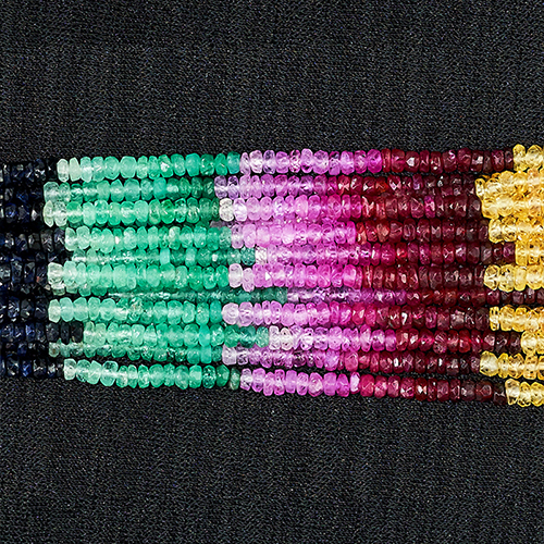 [Multi] 무착색 천연 멀티 루비&블루사파이어&오렌지사파이어&에메랄드 Faceted Rondelle AAA 약 4 mm ~ 6.2 mm (1)