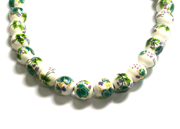 [Ceramics beads] 도자기 Round - 초록 꽃