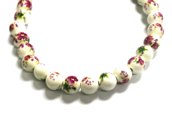 [Ceramics beads] 도자기 Round - 자색 꽃